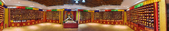 艺术中心大楼里,还供奉着格萨尔王的鎏金塑像、藏经房以及藏族人民编制牛毛帐篷的工艺图示等等。