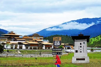 米拉雪山禅意壮美,五彩经幡连地接天;色季拉垭口群山环抱,百里林海随风起舞;有着“世界巨柏王”之称的千年古柏,一树便开枝散叶一亩有余,撑天蔽日蔚为壮观;素有“东方小瑞士”美称的鲁朗小镇,却是又一派圣洁宁静。来段小插曲:看到鲁朗镇碑旁边竖立着一块标牌,上书“318,此生必驾”。三个数字引我沉思,想起“君住长江头,我住长江尾”的歌谣。对于坐落在318国道首尾的上海与西藏来说,同饮一江水的沪藏情谊折射出社会主义大家庭的温暖。曾阅览过一份资料,上海援建西藏已持续30年,以日喀则为中心并逐步辐射藏东南,前方的墨脱也受益在即。在120万平方公里的苍茫西藏,墨脱显得很小,人口1.5万,不足国际大都市上海的千分之一,然而3.1万平方公里的土地面积,却是上海的5倍。现代浮华文明与原始生态文明因一条路相撞高原,如同脚下这片断裂带土地一样,裂变有声。两种文明虽天各一方,却各有千秋,各得其宜,并逐步趋于相融。