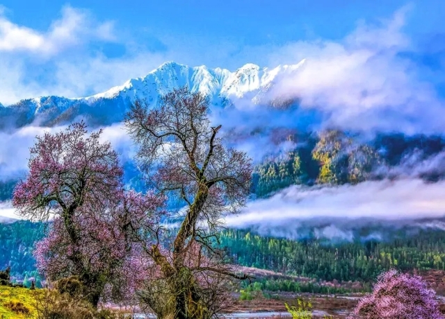 司机小赵好奇:“这里的花儿会是什么颜色呢?”扎西说:“杜鹃花多是黄、白、紫和大红色,桃花则以浅红或粉白为主,掺杂着一些雪青紫色,在雪山映衬下形成茂密的花阵。那种好看,能让人沉醉不知归路。”