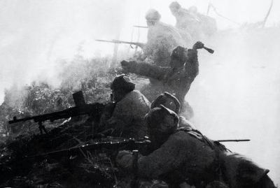 中国人民志愿军入朝参战基本使用的是以“炒面加步枪”的落后装备,而美国为首的“联合国军”是用飞机、大炮、坦克、汽车和最新科学技术武装起来的。劣势的装备与现代化敌军相抗衡,志愿军和朝鲜军民并肩作战,却把侵略者从鸭绿江边赶回了“三八线”。