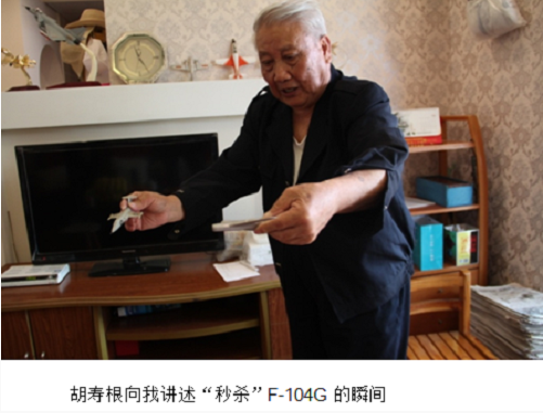我英雄空军面对强敌,摸索研究了一套针对F-104G实施大角度、斜对头、提前开火、拦阻射击的打法。胡寿根接敌的刹那间,在距敌900~800米处仅1.1秒的时间,用最远射程1500米的三门30口径火炮发射48发炮弹,将敌机击落。真乃“传奇英雄”。
