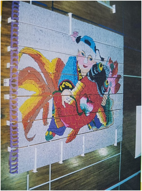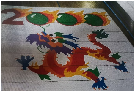 签定合同的当天,寻找场地的工作就开始了。很快场地就落实在北京大学生体育馆,中方29名摆牌的孩子来自北京184中学日语专业职高学生。随着时间的指针向新千年逼近,图形方案到位,美术到位,灯光到位,转播设备到位,传输线路试通,上百万张骨牌从日本启程运往中国,日方工作人员也川流不息地往返于北京与东京之间。有了场地,就可以设计摆放骨牌的图形方案了。我亲自参加了图形方案的决策。考虑到中日双方观众审美的异同,于是就有表现中国文化的中国龙、年年有余(鱼)、大熊猫图案;又有表现日本文化的红富士、神奈川冲浪图案、还有梵高自画像、画作向日葵、非洲斑马图案及水中多米诺、高高耸立的中国塔等技巧设计。中日两国国旗占用的骨牌最多,各为232197块,总计464394块,将近50万块。图案的布局方方面面都顾及到了。