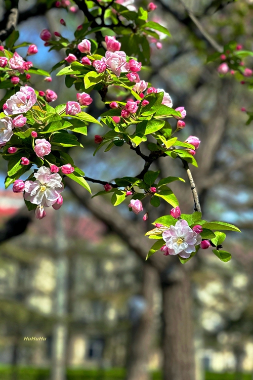 春意胜,浅绿掩深红。初绽胭脂妆碧树,欲凋绛雪舞苍穹。谁不爱芳容?