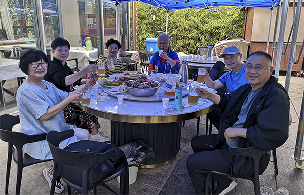 车先生和方女士多数时间在上海帮着女儿照顾孩子。2024年7月,他们从上海回到小城,朋友小聚,方女士说,前些天他们一家和况先生一家,像2023年一样在日照万平口又做了一次“深度游”。