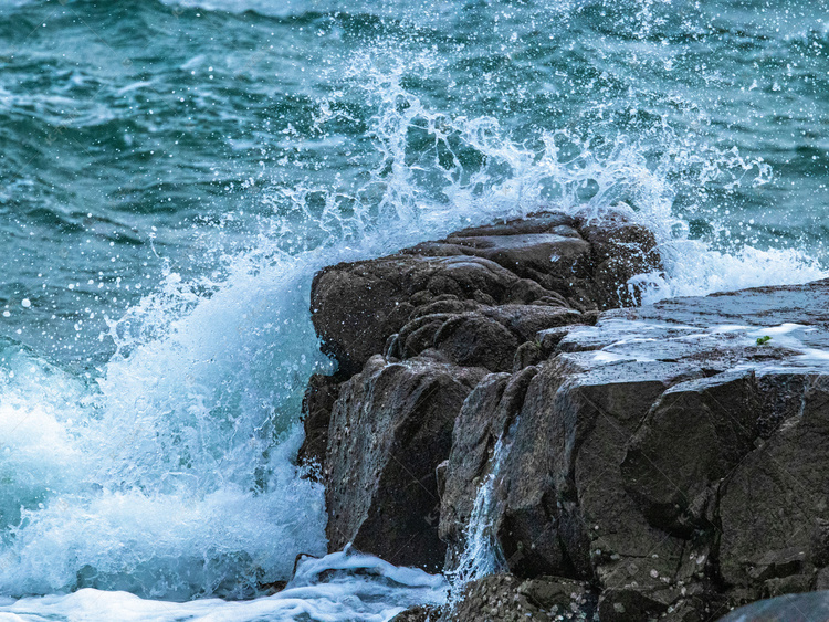 到了观景平台,整个景区只有我们四个人。平台临近海边,是直立挡水墙,如陡峭的悬崖,狂风卷起的巨浪,一次次冲向墙体,在惯性作用下,反弹起几层楼高的浪花,真是太刺激了!我们随着狂浪的节奏,用手机不停地拍照或录像。我看到身着防晒服戴着帽子的车先生,双手把持着手机,移步靠近崖边,一个巨浪升起,又劈头盖脸地“砸”了下来,他躲闪不及,便成了“雨人”。