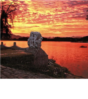 傍晚是于都河最美的时候,水面被夕阳染得一片血红,就连江面上的三两只白鹭也被染上了颜色,变得通体血红。岸上的现代化高楼倒映在清凌凌的河水中,那情形,就像河里也有一座城镇。