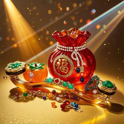 华灯初明呈祥瑞,旭日东升百福臻。