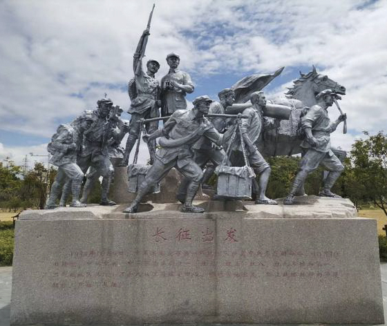在距离广场不远处,是四组群雕,文字标题分别是“长征决策”“长征准备”“长征出发”和“浴血坚守”,表现了红军长征出发前的一系列工作安排。