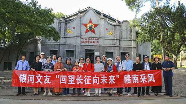 10日这天,当地党和政府和人民群众一道,组织了纪念中央红军长征出发90周年群众红色文艺展演。展演在中央红军长征出发地纪念广场举行,广场上纪念碑耸立,纪念碑上是一组红军出发形象雕塑。文友们在现场瞻仰纪念碑,观看了红色演出。
