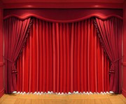 [舞台正面为典型的淮安西北乡农村村口,村内可见十几间草房,夹几间半草半瓦房、土圩等。舞台左侧村口有碾台、大柳树等,右侧有圩堆芦苇,村口正面至舞台边是一条横向土路。