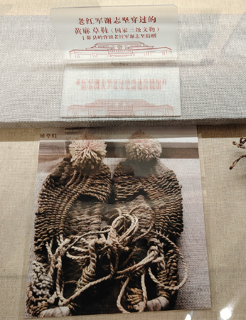 20世纪80年代,谢志坚将这双草鞋捐赠给中央红军长征出发纪念馆,并在鞋尖上绑上了一对红心绣球,以此纪念他与春秀的爱情。