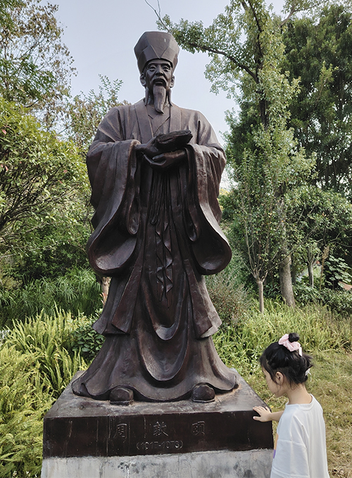 周敦颐与《爱莲说》。北宋仁宗嘉佑八年(1063年),时任虔州通判的周敦颐,与同僚钱拓、于都知县沈希颜和于都处士王鸿同游罗田岩。周敦颐在此赋七绝《游罗田岩》一首,开创了罗田岩摩崖石刻的先河。同年五月,周敦颐作《爱莲说》,并由沈希颜书、钱拓上石,刻于罗田岩的濂溪阁。《爱莲说》由此在罗田岩首发,成为千古名篇。