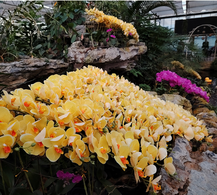 这里的兰花,品种繁多,姿态各异。娇艳欲滴的蝴蝶兰,花瓣如同蝴蝶的翅膀,轻盈而优雅,色彩斑斓,仿佛随时会振翅飞起;墨兰则显得更为内敛,墨绿色的叶片宽大而厚实,花朵虽小,却散发着淡淡幽香,如一位隐士,静静诉说着岁月故事;蕙兰的花茎高挺,花朵疏密有致,花瓣上带着独特的纹理,如同精美的刺绣,展现出高雅的气质。石斛兰则生长在园内的岩石上,根系紧紧抓住岩缝,顽强地生长,花朵如同星星般点缀在枝头。除了这些常见的兰花品种,博兰园还培育了许多珍稀的兰花,它们以不同的姿态、不同的色彩,共同编织出一幅绚丽多彩的兰花画卷。