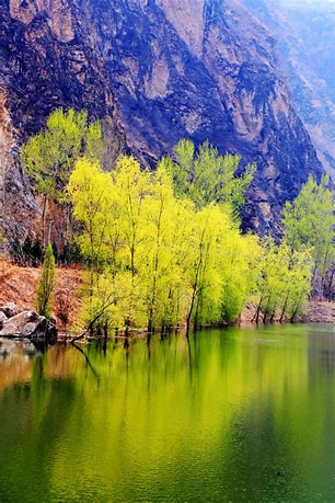 三月中旬的辛安河,途经这里水势不再是那么的凶猛,只有几股河水沿着围子山脉静静的流向远方。流向村庄的小河潺潺流水,流向果园,流向田间,滋润着这片肥沃的土地。河边的柳树已绿芽,千态百姿的柳枝随风飘荡,向人们报告春天的消息;悠闲吃草的山羊妈妈,不远处是满地撒欢的小羊羔,果园里成群的鸡鸭鹅在觅食,小花猫在树下眯着眼睛在打盹,好一幅山水版的人间烟火的清明上河图。