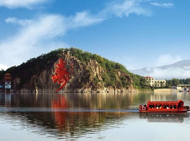 最令人叹为观止的是鹤寿峰的石崖上刻有高38米宽18米的天下第一“寿”字,是乾隆的笔体。千里冰封万里雪飘的冬季,这里是人山人海的冰雪嘉年华大乐园。人们可以来此地赏雪景、玩雪爬犁、堆雪人、打雪仗,近距离仰望雪地冰天间高大的寿字!春暖花开后长寿湖水碧波荡漾,与石崖齐高的“寿”字红光四射,分外醒目。湖面上,灰鹤、野鸭、苍鹭、凤头鸊?等候鸟晨辉暮影间乐在其中。