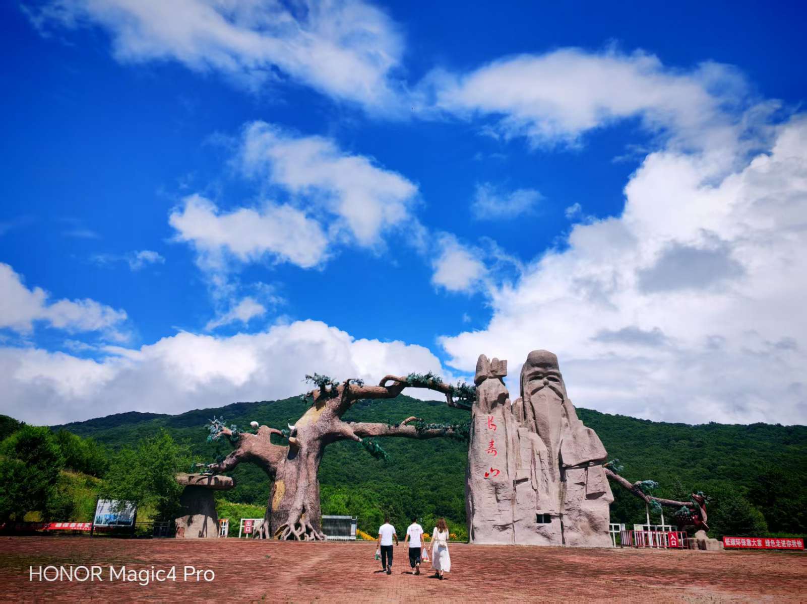 长寿山,林深树茂,早年拍摄的电视连续剧《赵尚志》曾在这里拍摄取景。步入景区山门不远处,便看见一湾清澈的长寿山泉淙淙流淌。附近村民进山也常来饮用此山泉水。今经科学化验,此山泉水为适宜饮用的偏硅酸型矿泉水,长年饮用延年益寿。山脚下古色古香商亭回廊处是人气极高的网红直播打卡地,游客可以租借各式华美汉服拍照留影。沿着林间石阶一路向上,半山腰处的石海入口横卧着已故长春电影制片厂著名导演——延寿人张笑天题字的“石海”巨石,它的身后便是足球场大的一片石海。从石海再拾级而上,穿过苍松白桦林就到了石林,一路有昂首仰望的骆驼峰,还有灵芝石、海豚之吻、一线天、寿星石……站在观景台“一览江天”,脚下一山峰就像石蛙昂首望天,远望峰峦叠翠,碧波荡漾的长寿湖尽收眼底。