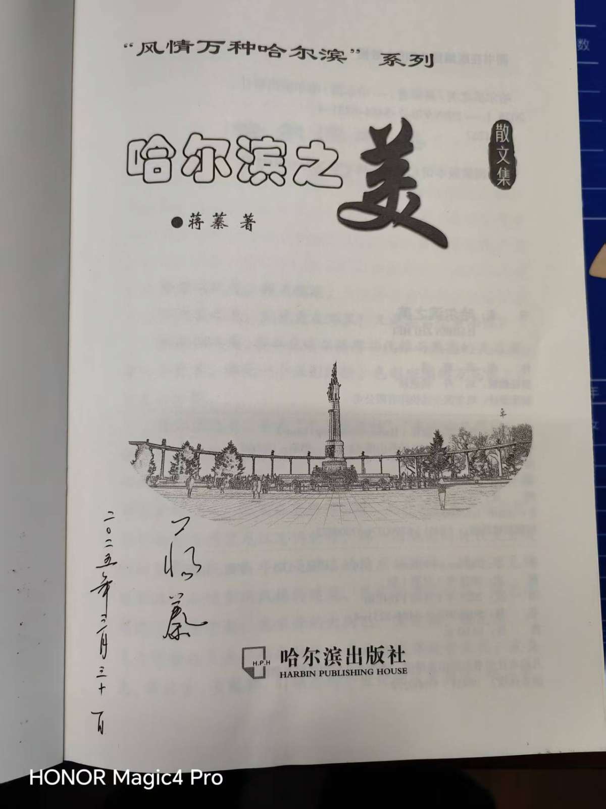 融入冰城夏都哈尔滨快两年了,渐渐地沉醉于对这座建筑艺术之城、音乐之都、冰雪艺术之城、美食之城的一知半解。我的注意力渐渐地转移到了太阳岛外滩湿地、哈尔滨大剧院湿地、阳明滩外滩湿地、阿勒锦湿地等处,有时间就会骑行去转转,痴迷城外生态美之鸟语花香大自然之中。直到最近一次文友小聚,初识作家蒋蓁,获赠一本他今年新出版的一本散文集《哈尔滨之美》,工作之余品读欣赏,方知自己夜郎自大之浅陋。