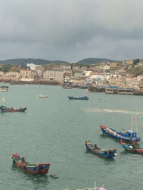 早晨的渔港,总是静静的,只有那船头的三角小旗,轻轻摆动着,原先依靠在海边的渔船,正等待着出航,没有了这星星点点的渔船,这“渔”就真成为“鱼”了。