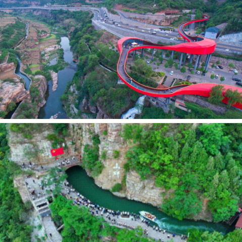 观景台、步云桥、凌云亭;鹰咀山,一线天,虎口崖,神工铺,集“雄、险、奇、秀”为一体的自然美景与红旗渠民族精神完美融合,使人叹为观止,也使人热泪盈眶。