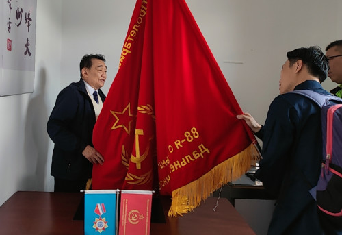 在一面苏联红旗88旅军旗前,安然先生向我们讲述了那段惊心动魄的历史——