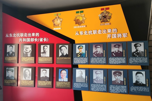 展厅里展示的从东北抗联走出来的共和国部长省长和开国将军(李东顺拍摄)