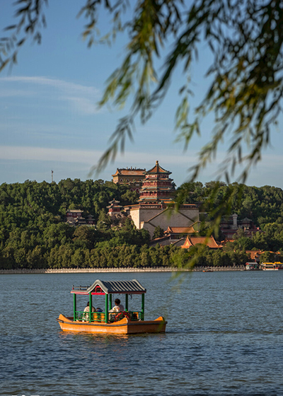 我知道,在北京的西北角有两个皇家园林,一个是圆明园,一个是颐和园。我曾去过圆明园游览,逛了一周,留下的记忆只有“西洋楼”和“大水法”的残垣断壁,而颐和园就一直没有机会来过。我站在湖边远眺,感觉这湖比杭州西湖还要大许多。湖边垂柳依依,柳枝上点缀着鹅黄嫩芽,散发着清新的早春气息。再看,远处的万寿山,隐隐约约的建筑群,还有近处的南湖岛,更远处的玉带桥、石拱桥,它们构成的风景画,就是梦中江南的山水风情。
