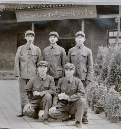 照片上,年轻的父亲和蒲丕隆叔叔蹲在前面,后排右一是王崇凡叔叔。(后排中间,左边两位叔叔名字正在寻问中)。他们五人来到武昌《毛泽东同志中央农民运动讲习所》旧址参观并留影,照片中他们身着军装,身姿挺拔,每个人眼神中透着坚定与无畏,仿佛整个世界都在他们的掌控之中。