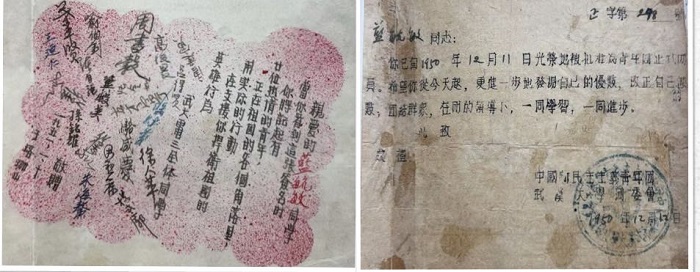 武大同学签名欢送妈妈参军及妈妈的入团证书