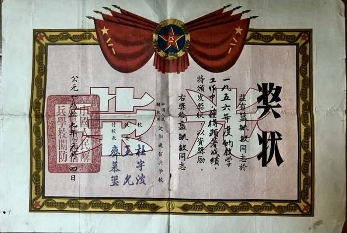 沈阳通信兵学院颁发的奖状