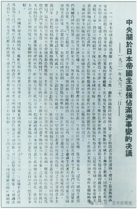 中国共产党率先举起了抗日救国大旗,此时的中共中央和中华苏维埃共和国临时中央政府,迅速发表宣言、作出决议,号召工农红军和被压迫民众发动民族革命战争驱逐日本帝国主义出中国。事变发生后第三天,中共中央发表《中国共产党为日本帝国主义强暴占领东三省事件宣言》,强烈谴责日本侵略,号召全国民众以民族革命战争驱逐日本帝国主义出中国。此后,中共中央又发表一系列文告,如《关于日本帝国主义强占满洲事变的决议》等,表明坚决抗日的立场。中国共产党还派遣大批党员干部到东北,组织东北人民开展游击战争。1933年,中共中央首次提出在东北组织全民族的抗日统一战线,领导的各地游击队逐渐发展成为东北抗日游击战争的主要力量。