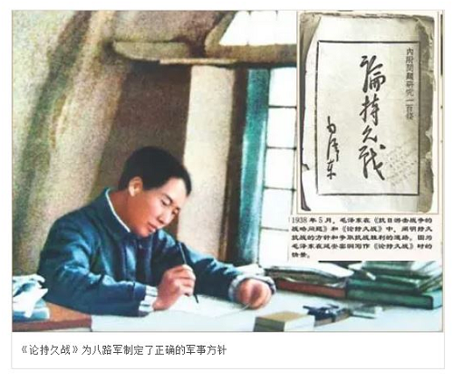 1938年5月,毛泽东主席撰写《论持久战》,系统阐述了抗日战争的特点、前途和发展规律,驳斥了“亡国论”和“速胜论”。毛泽东指出,中国必须、也能够经过持久抗战取得胜利,持久战必须经过战略防御、战略相持和战略反攻三个阶段,强调持久战的基础是广大民众。《论持久战》从思想上武装了中国共产党领导下的广大抗日军民,坚定了全国军民争取抗战胜利的信心和决心,指明了战争的前途,成为指导全国抗战的纲领性文献。