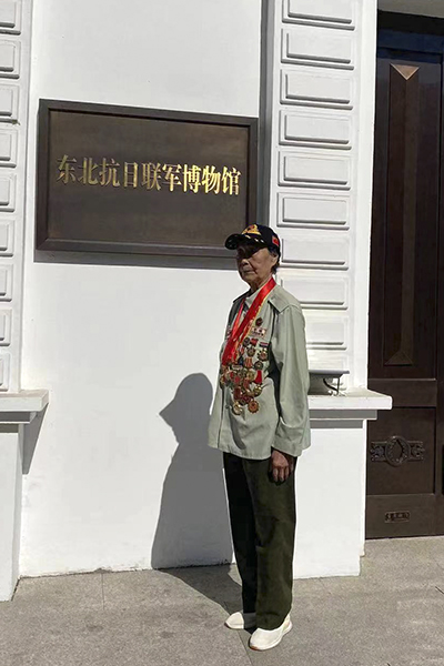 那天上午,身着戎装,胸前挂着许多奖牌的胡妈妈,庄严地站在东北抗日联军博物馆前,一个标准军礼,向东北抗日联军的英雄们致敬。胡妈妈叫胡顺,已经90岁高龄,曾参加过抗美援朝,是一位志愿军老战士。她老人家在女儿陪同下,参加了这次银河悦读中文网组织的“抗战胜利纪念日,银河文友东北行”活动。