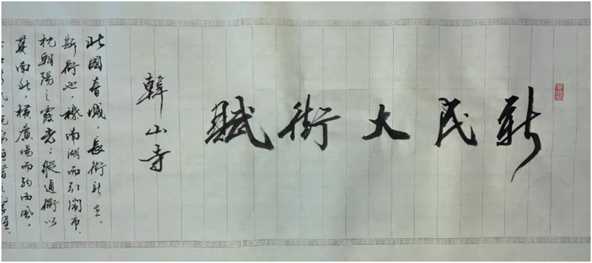 著名作家、诗人、文化学者韩山寺先生,专门为焕新的新民秉笔作赋,且有历经数日,修润21次,终于化古典诗韵为镜,照见了长春新民大街从过往到今朝的岁月流转,字里行间,尽是“新民”二字里藏着的深意。此赋一出,春城震动,不说是“洛阳纸贵”倒也是满城喝彩。吉林省书法家协会副主席刘福生为《新民大街赋》书法题名;吉林省国学研究会书画艺术专业委员会会长、吉林省书法家协会会员姜子明精湛书法书写了《新民大街赋》全文;吉林省民盟书画院院长魏宏声为《新民大街赋》篆刻题名。电台专业出色主持人、朗诵学会资深导师、朗诵名家等诸多朗诵界业内人士青青、岚新、陶然行者、温暖阳光、孟令军等纷纷诵读此赋。不同的艺术传播方式,让赋这种古典艺术以浓郁的人间烟火气浸润春城人民的心灵。