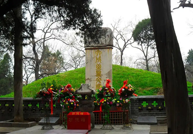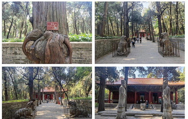 神道石板因千年踩踏,光滑似镜。导游称 “一座坟一个朝代”。拨开草丛,可触碰春秋黄土;前行几步,能寻见秦汉、唐宋规制;草坪处安葬着 2018 年迁回的七十六代后裔骨灰,草籽覆棺,借春秋荣枯传递 “时光接力”。