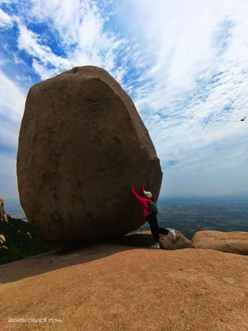 千百年来,它始终稳稳地屹立在丹丸峰上,见证着峄山的日出日落、四季更迭,经受住了无数次狂风暴雨、地震山摇的考验。这股于险境中岿然不动的宏大气魄,简直是天地间最磅礴的宣言,怎能不让人心生敬畏、深深折服!