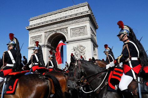 而在第二次世界大战期间,当德国军队占领巴黎时,他们趾高气昂地强行穿过凯旋门,沉重的军靴踏在石板路上,发出令人心碎的声响,给这座承载着无数荣耀的建筑蒙上了一层厚厚的阴影,巴黎的天空仿佛都因此变得灰暗无光。但法国人没有屈服,1944年巴黎解放后,法国军队再次在凯旋门下举行阅兵式,士兵们迈着坚定有力的步伐,脸上洋溢着胜利的喜悦与自豪,宣告着法国的重生与自由。那一天,阳光格外灿烂,洒在凯旋门上,让它重新焕发出耀眼的光芒。