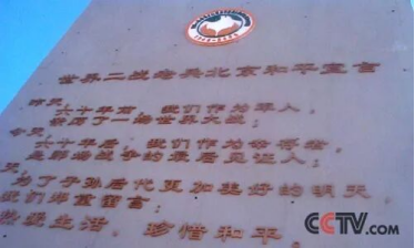 (阳光照耀下的北京和平墙纪念碑 图源:央视新闻频道)