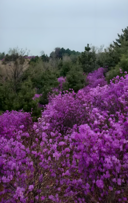 在这座神奇的山上,花卉品种繁多,不下百余种。然而,最让我心潮澎湃、魂牵梦绕的,当属那金达莱花。当地人亲切地称它为“莱花”。金达莱,杜鹃花科的坚韧使者,它有着极强的耐寒性,偏爱酸性土壤,仿佛是大自然派来的勇士,无畏地扎根于这片土地。其花色以粉红、淡紫或白色为主,花瓣边缘呈波浪状,花蕊细长而突出,在阳光的照耀下,娇艳欲滴,宛如一群身着盛装的仙子,在山间翩翩起舞,散发着令人陶醉的魅力。