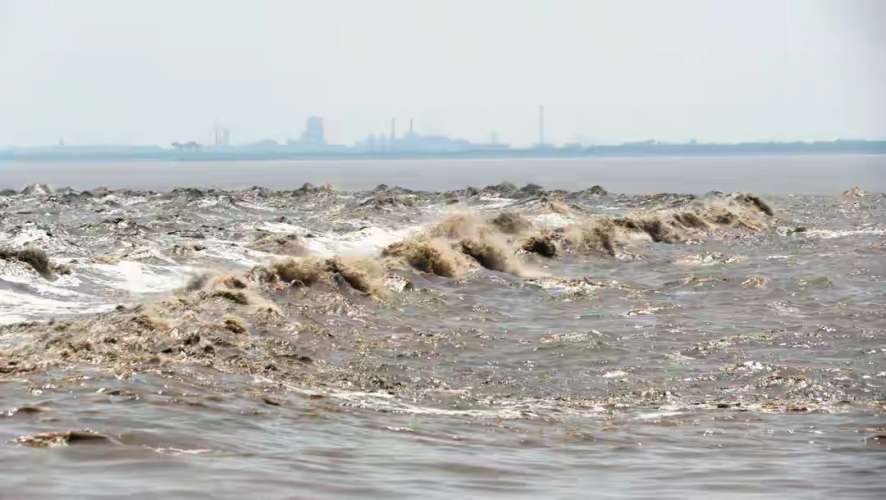 在潮型特点中,“对撞潮”与众不同的是,两股潮水交汇时产生对撞呈现的是两股潮水正面交锋,瞬间会产生浪花溅起,而“对撞潮”出现的机遇非常难得,十分罕见。