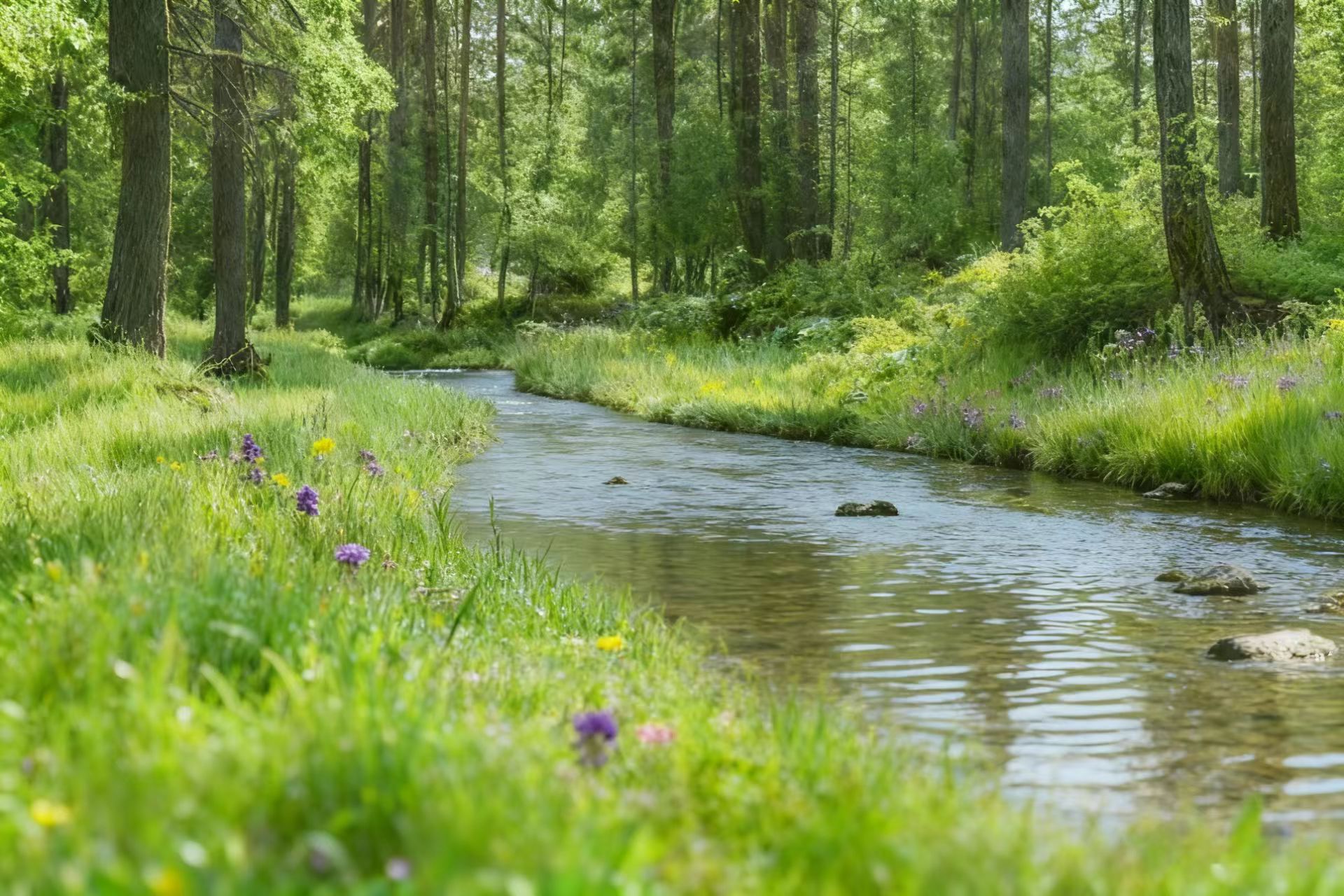 站在桥上望去,连绵的绿野葱林掩映着村庄,白墙红瓦在绿树间露出来,屋顶的太阳能板闪着光。河水依旧慢腾腾地流,映着天上的流云,也映着岸边人家的身影。有人在河边垂钓,有人在河边散步,还有孩子在河边追逐打闹,笑声顺着河水飘远。很多往事,就像河底的鹅卵石,被水流磨得光滑,沉淀在河床深处,不轻易提起,却从未忘记。