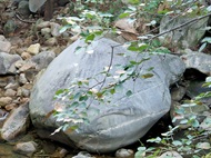 而龟石本是溪流中的一块石头,因看似一只匍匐的乌龟,便取名为“龟石”,并编纂故事说:相传,此孤独小龟在雷公劈鲶鱼精时受到惊吓,被溪水冲到下游。现在还可以看到它的头正朝向东方,想要逆流而上寻找它的母亲。