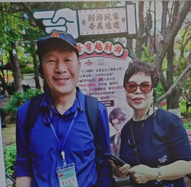 徐国庆带着刚出院的老伴参加青岛秋游,“只要她能走路,我就参加。”