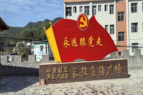 我还抽空到五龙圩走了一圈,来到红军第五、八军团长征集结广场,这里建有长征纪念亭,宣传长廊……