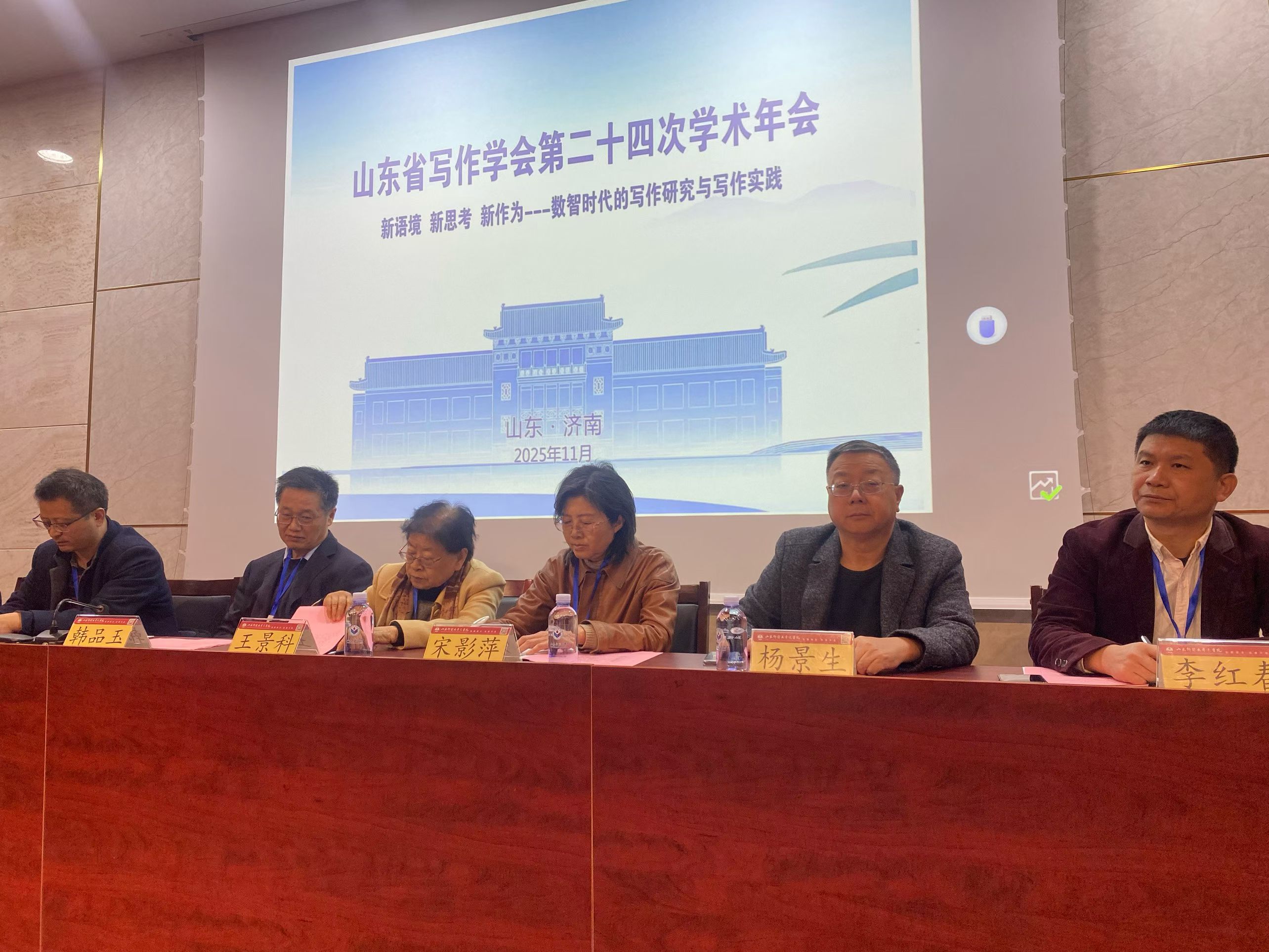 2025年11月的省城济南,初冬的暖阳穿透薄雾,给这座浸润着文脉与历史的省城镀上一层温润的光晕。山东师范大学千佛山校区内,法桐叶裹挟着焦糖色的融融暖意铺满甬道,踩上去沙沙作响,如同时光在低语。教学三楼东头北侧的3155会议室门前,木质指示牌被阳光晒得泛着柔光,清晰地标注着“山东省写作学会第二十四次学术年会”。在这里,来自全省的文化名流、学界翘楚陆续落座,衣袂间裹挟着思想的锋芒,低声交谈中不乏对文学创作的真知灼见,尽显齐鲁文脉“海岱文脉承千年,笔墨风流续华章”的深厚底蕴。作为一名扎根胶东乡村的业余作者来到这里,胸前的代表证在灯光下折射出柔和的光芒——这份来自山东省散文学会的邀约,早已在心底酿成难以言说的悸动,恰似“乡野藏文心,偶登大雅堂”的意外之喜。