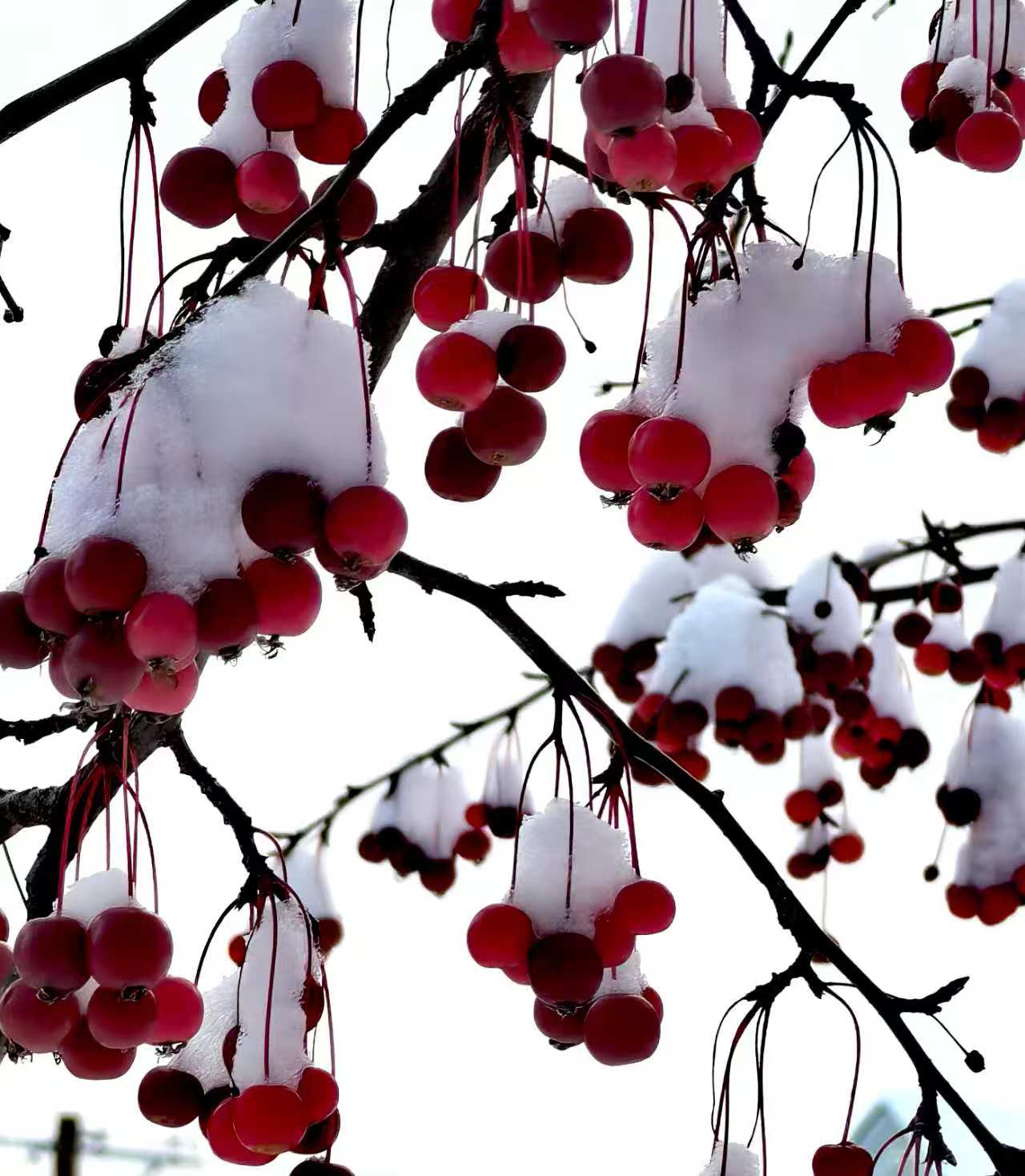 你镜头里的雪,该是凉丝丝的吧?落在掌心会悄悄融化,带着冬晨的清冽;那红果该是脆生生的吧?或许还沾着未干的雪粒,咬下去会有淡淡的清甜。这些未曾言说的细节,都藏在你的镜头里,让这帧风景变得格外鲜活,也让我想起当年我们凑在山楂树下,你把那颗攥热的红果递到我嘴边,酸甜的滋味在舌尖散开,连带着冬日的寒意都消散了大半。