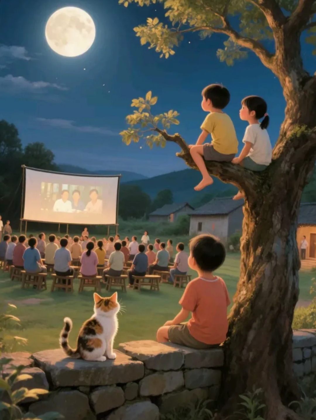 看电影时,个子矮的踮着脚,脖子伸得像长鹅,也只能从人群的缝隙里瞥见银幕一角,连人物模样都看不太清。寒风从人群的缝隙里钻进来,冻得人缩着脖子搓手,却没人愿意离开,头顶的寒星默默照着这场热闹。有时候去得更晚些,正面的空地全被占满,连插脚的地方都没有,只得绕到银幕背面,隔着厚实的帆布看反向的画面。字是倒的,人影动作也翻着个儿,《地道战》里乡亲们挖地道的身影成了反向的穿梭,《地雷战》里的地雷爆炸成了倒着散开的火光,寒星的光落在帆布上,添了几分朦胧,演员的表情看不清,只辨得清模糊的身形和晃动的光影,可即便这样,也舍不得走。听着音箱里传来的台词,比如《平原游击队》里李向阳那句“我们是抗日的队伍,专打鬼子汉奸”,依旧能跟着心头一热,顺着剧情的起伏揪心、欢喜,倒也看出了别样的滋味。熬到换片子的间隙,放映机停了,银幕暗下去,人群里起了骚动,有人咳嗽,有人跺脚取暖,哈出的白气在星光下连成一片,这才看清周遭满是攒动的身影,肩膀挨着肩膀,后背贴着后背,连转身都难。等到电影散场,天更黑了,风也更烈了,夜空里的寒星愈发透亮,像铺了一条星光大道,众人裹紧棉袄往回走,路上的积雪被踩得紧实,脚步声在寂静的夜里格外清晰,细细回想,竟连演的啥故事都没摸透,却也不觉得懊恼,只盼着下次能赶个早。
