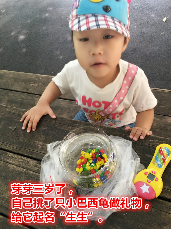 若问这一天最值得回味的是什么?一定是小龟“生生”。因为,它让我联想到“生生不息”这个更悠长的寓意。它既是芽芽三周岁生日最特别的礼物,更让“生生不息”这四个字有了专属于我们的温情。生生不息,是生命的延续,亲情的绵延,更是祖孙情最贴切的注脚。