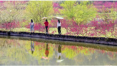 村里还探索出“菊花+双效桃”套种模式。每年3月,桃林里桃花盛开,桃夭灼灼其华,粉红的花瓣如云霞般绚烂,随风纷飞,仿佛一场浪漫的花雨。“春风吹得游人醉”,大批游客慕名而来,欣赏这如诗如画的美景。村里顺势举办桃花节、采果节、菊花节等活动,吸引了更多的游客。村里还种植了二百多亩莲藕,每到夏季,荷花盛开,亭亭玉立,宛如水中的仙子。菊花、桃花、荷花,“三花”争艳,让王家坝村“四季有花,四季有果”。游客们来到这里,住农家乐,吃农家菜,赏花品茶,夜里还能在田野里数星星,游客来了就不想走。真正体验到了乡村生活的宁静与美好。