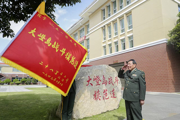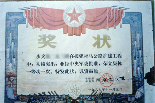 参观过部队荣展室后,罗将军称赞战旗部队不仅战争期间屡立奇功,在和平建设时期也立下了不朽功绩。他看到在各个时期全体指战员积极响应党的号召,一手抓军事训练,一手支援国家经济建设;完成了闽北剿匪战斗、全军比武、国防施工等重大国防战备任务。1985年,部队奉命援建鼓山隧道,全体指战员发扬战争时期不怕苦不怕死的拼命精神,艰苦奋斗,以手动打钻、肩挑背扛的人工方式,仅两年半时间,建设完工福马路工程隧道——这是福建省第一条一级公路,也是我国最长的一级公路双向隧道,被中央军委授予集体一等功。地方政府在鼓山隧道入口建了部队修筑工程的永久性群雕,以资表彰纪念。