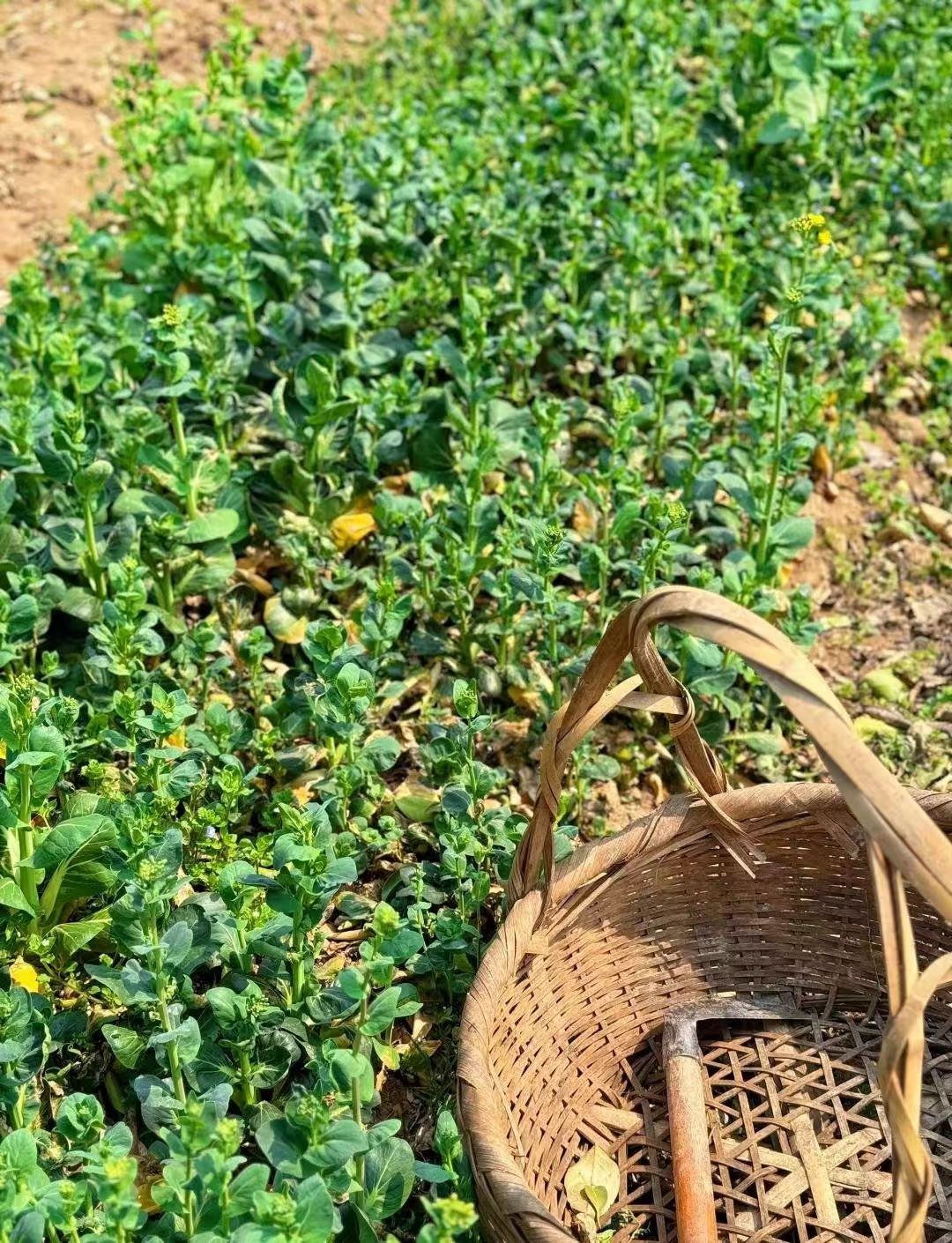 那菜苔,是含苞欲放的,是珍贵的,绿色的肌肤,星星点点的花苞,若隐若现的惊喜。春节过后,母亲会拎着篮子,踮着脚,在菜园里开始揪菜苔了。她小心翼翼地顺着菜心,拣嫩的掐,轻轻一掰,翠色的肌理便带着泥土清香,咔嚓有声,清香漫溢。母亲把揪下的菜苔握在手里,捏不住了放进篮子继续寻着,沿着菜园地走一圈,就是半篮子菜苔。青绿绿的青菜苔,让人欢喜,春意和收获都扎实可触。
